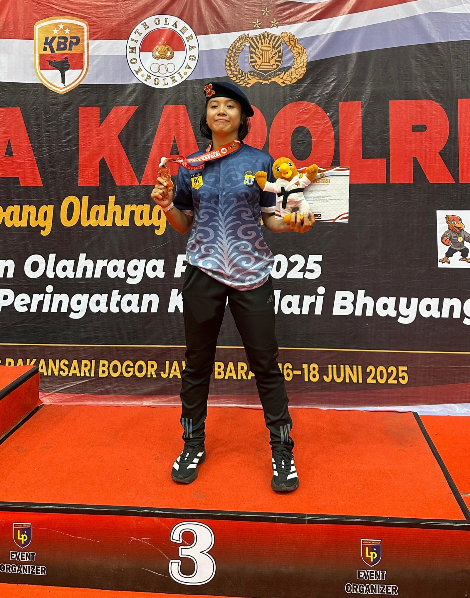 TARAKAN – Tim karateka dari Polda Kalimantan Utara (Kaltara) berhasil meraih satu medali perunggu pada Kejurnas Karate Piala Kapolri 2025 yang berlangsung di Pakansari, Bogor, Jawa Barat, pada 16 hingga 18 Juni 2025. Dari lima karateka yang berlaga, medali perunggu tersebut diraih oleh Bripda Theresia Otnel, atlet putri di kelas -55 kg usia 18-20 tahun.