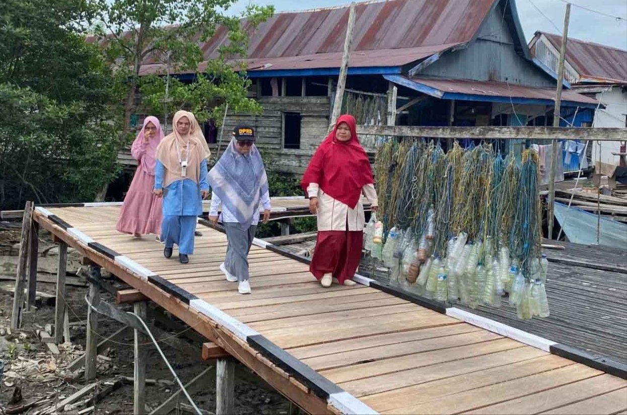 NUNUKAN – Wakil Ketua I DPRD Kabupaten Nunukan, Ir. Arpiah ST, M.I.Kom, meninjau langsung rehabilitasi Jembatan Jerambah Tanjung yang berlokasi di RT 24, Kelurahan Nunukan Barat, Selasa (28/10/25).