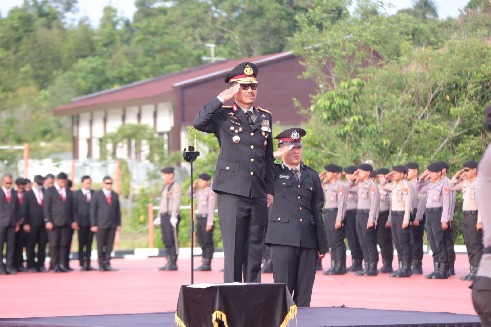 Wakapolda Kaltara Brigjen Pol. Andries Hermanto, S.I.K., S.H., M.Si., yang bertindak sebagai inspektur upacara yang diikuti oleh para Pejabat Utama, Personel, dan ASN Polda Kaltara.