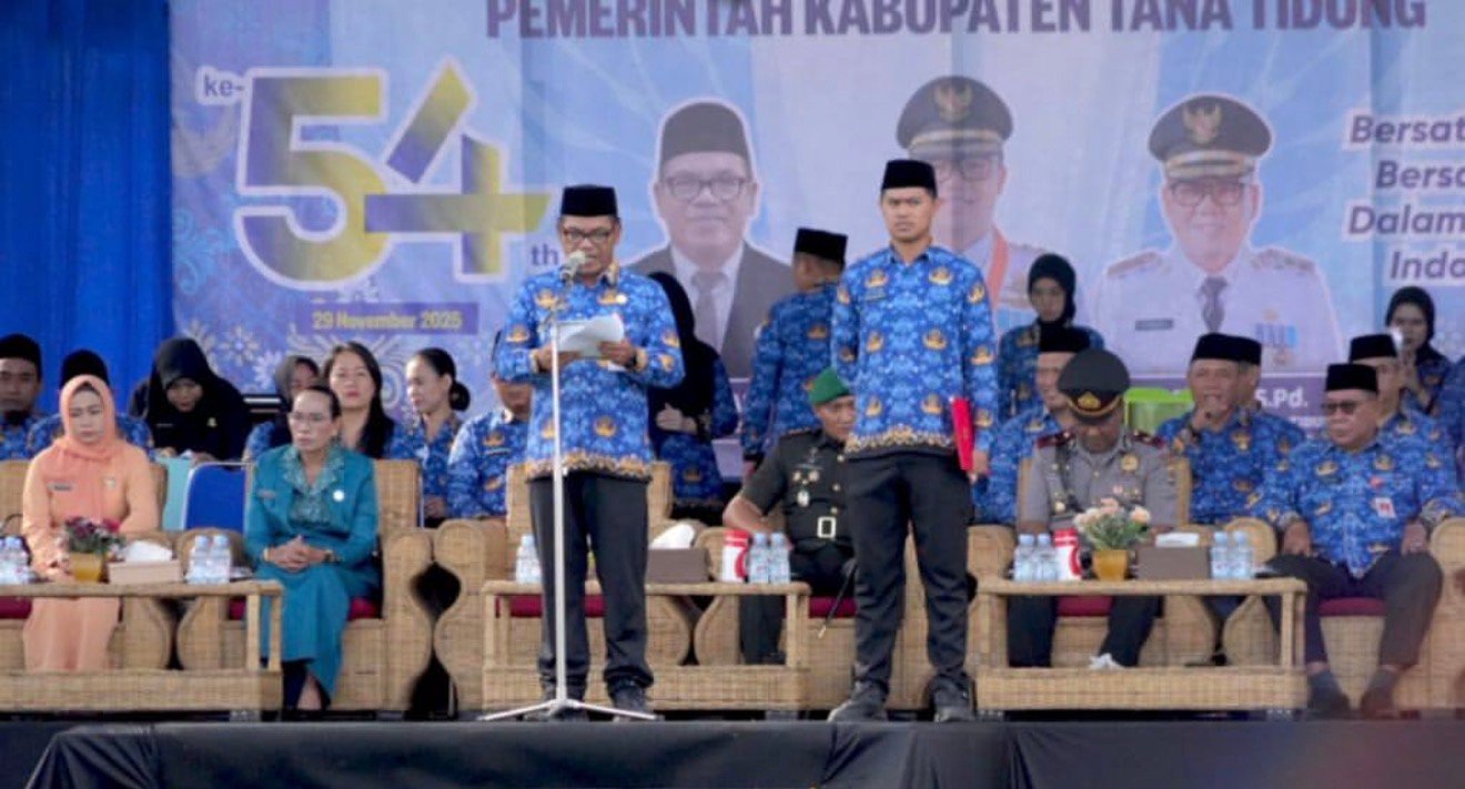 TANA TIDUNG – Upacara peringatan Hari Ulang Tahun (HUT) ke-54 Korps Pegawai Republik Indonesia (KORPRI) Tahun 2025 berlangsung khidmat di Ruang Terbuka Hijau (RTH) H. Joesoef Abdullah, pada Sabtu (29/11/2025).