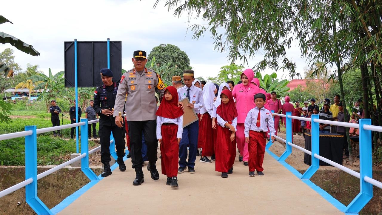 “Pembangunan Jembatan Merah Putih Presisi ini merupakan bukti nyata bahwa kehadiran Polri tidak hanya dalam menjaga keamanan, tetapi juga hadir memberikan manfaat langsung bagi masyarakat. Semoga jembatan ini dapat dimanfaatkan dengan baik, khususnya bagi para pelajar yang setiap hari melintas di jalur ini,” ujar Irjen Pol. Djati Wiyoto Abadhy dalam sambutannya.