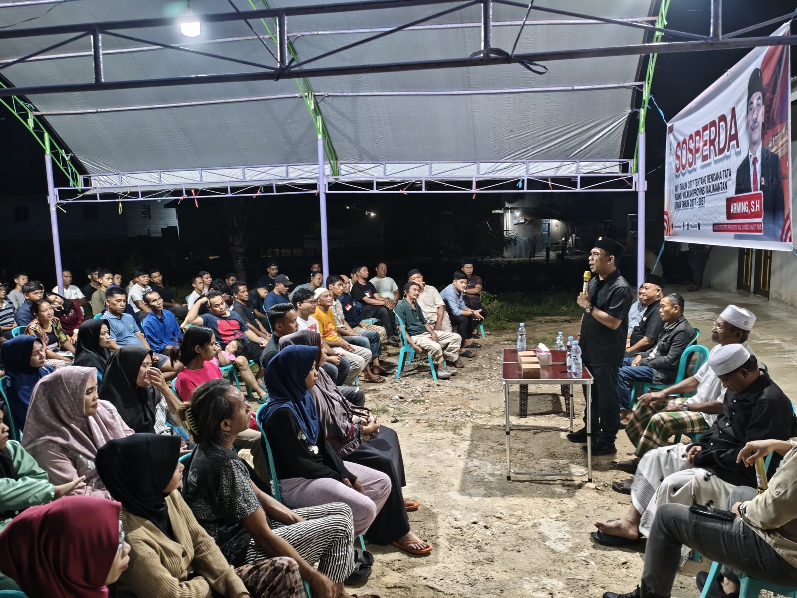 NUNUKAN – Anggota DPRD Kalimantan Utara, Arming, menggelar sosialisasi Peraturan Daerah (Perda) Nomor 1 Tahun 2017 tentang Rencana Tata Ruang Wilayah (RTRW) Provinsi Kalimantan Utara 2017–2037, sekaligus menyerap aspirasi masyarakat dalam sebuah pertemuan bersama warga.