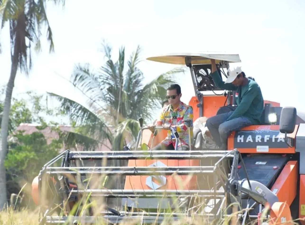 Bupati menyampaikan bahwa penggunaan alat modern seperti combine harvester sangat membantu petani dalam mempercepat proses panen, mengurangi kehilangan hasil, serta menekan biaya tenaga kerja.
