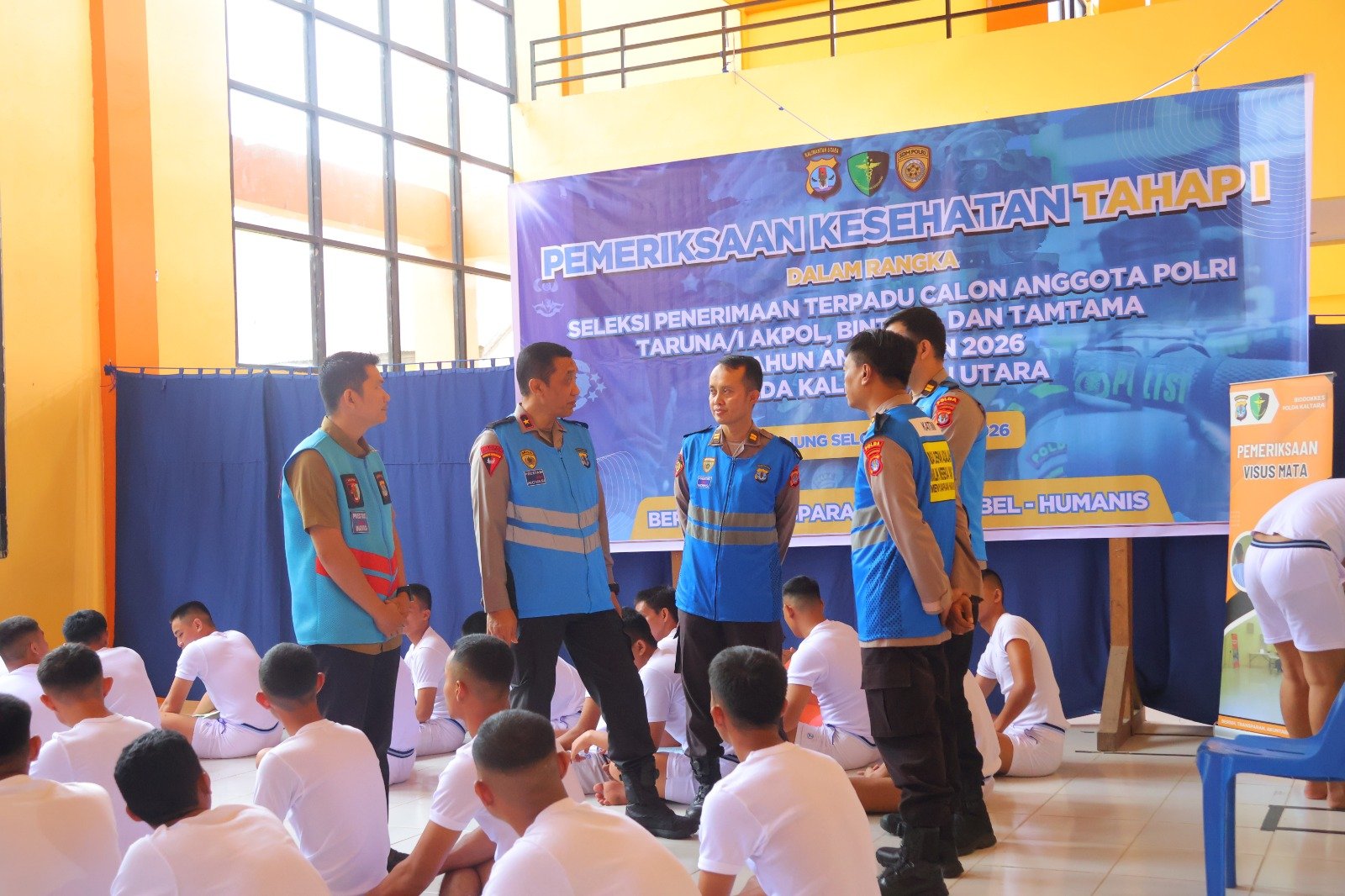 TANJUNG SELOR – Wakapolda Kalimantan Utara, Brigjen Pol. Gol. Yusuf, S.I.K., M.Hum., meninjau langsung pelaksanaan Pemeriksaan Kesehatan (Rikkes) Tahap I dalam rangka Seleksi Penerimaan Terpadu Calon Anggota Polri T.A. 2026. Kegiatan yang berlangsung di Aula Kecamatan Tanjung Selor ini diikuti oleh para calon Taruna/i Akpol, Bintara, dan Tamtama Polri, Selasa (14/4/2026)